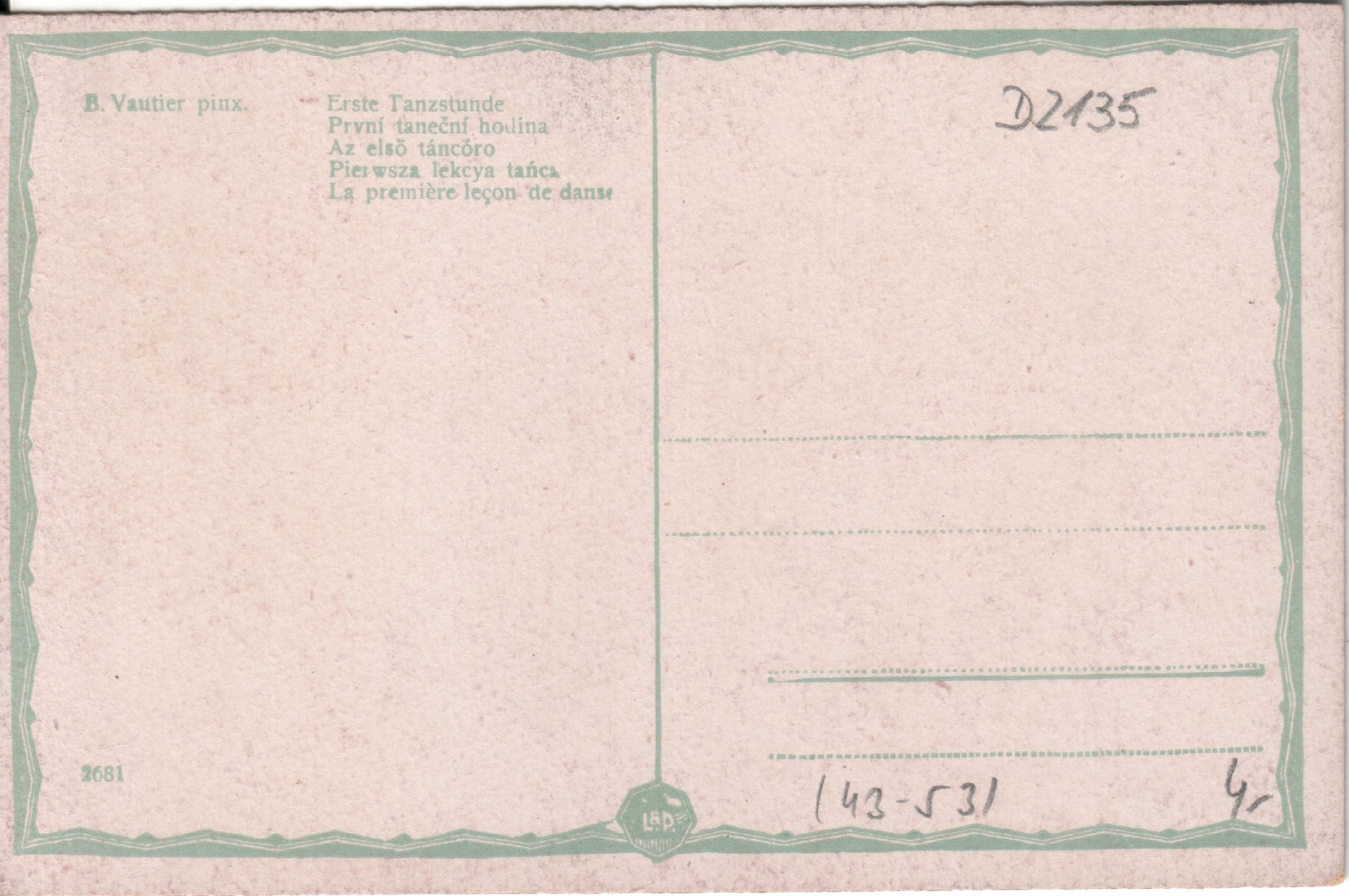 Künstlerpostkarte, Erste Tanzstunde, nach B. Vautier, D2135