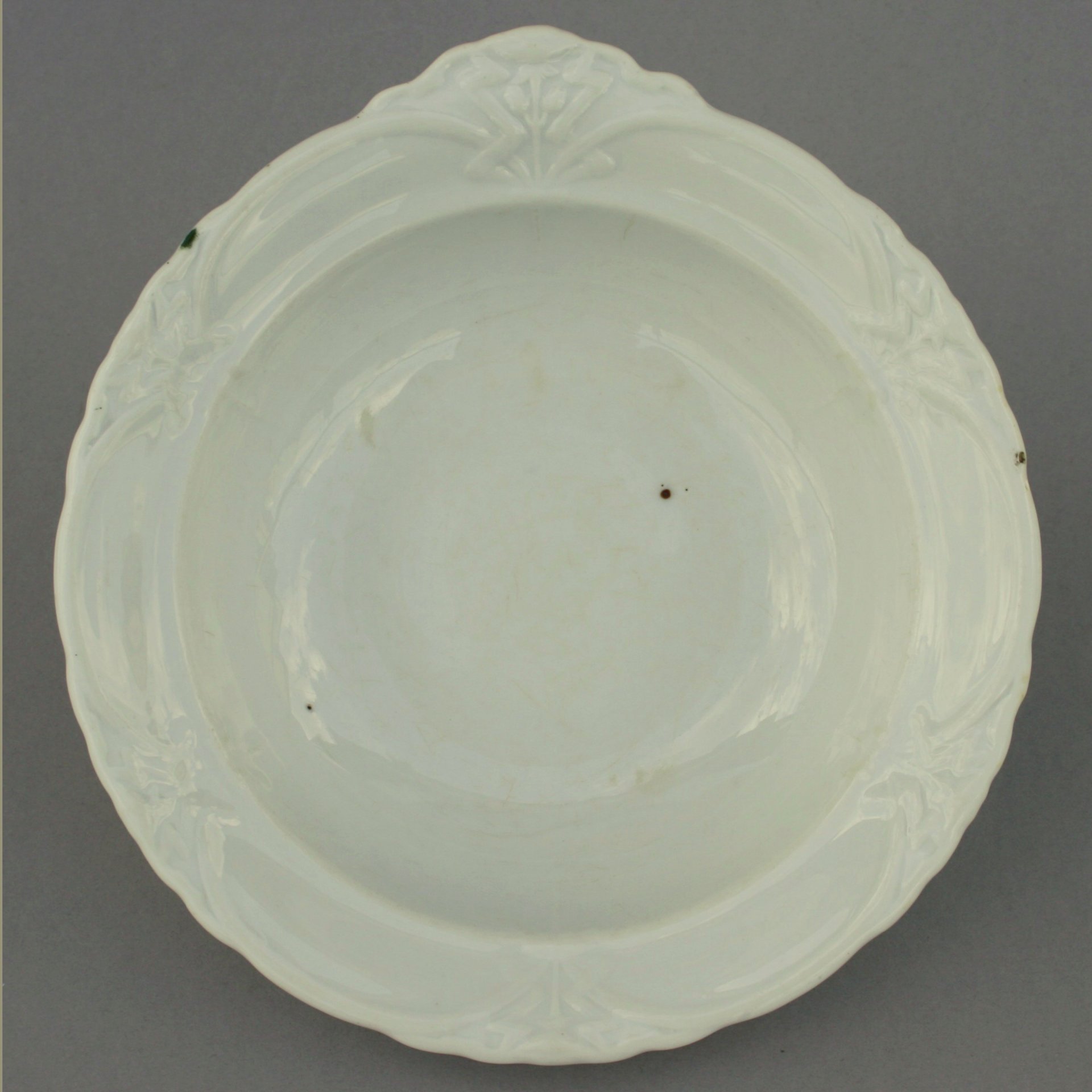 • Es scheint sich um 2. Wahl zu handeln. Der Händler hatte von einer Privatperson aus Magdeburg-Ottersleben ein großes Konvolut von Weißware mit Fehlern der Buckauer Manufaktur erworben - wohl Werksverkauf oder Mitarbeiter.