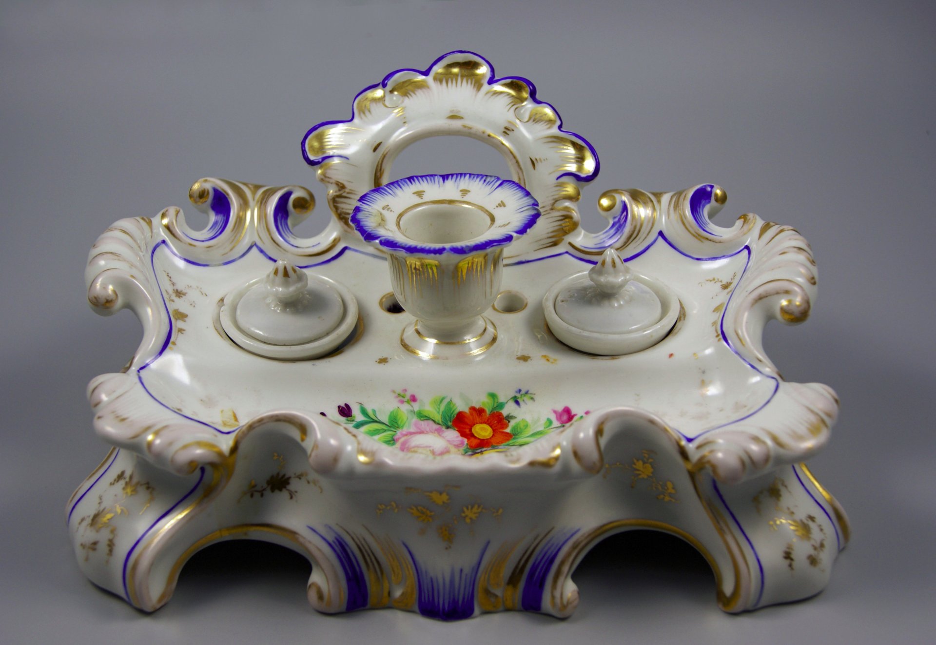 Buckauer Porzellanmanufaktur, Schreibzeug mit Oblatenhalter um 1850, D1011