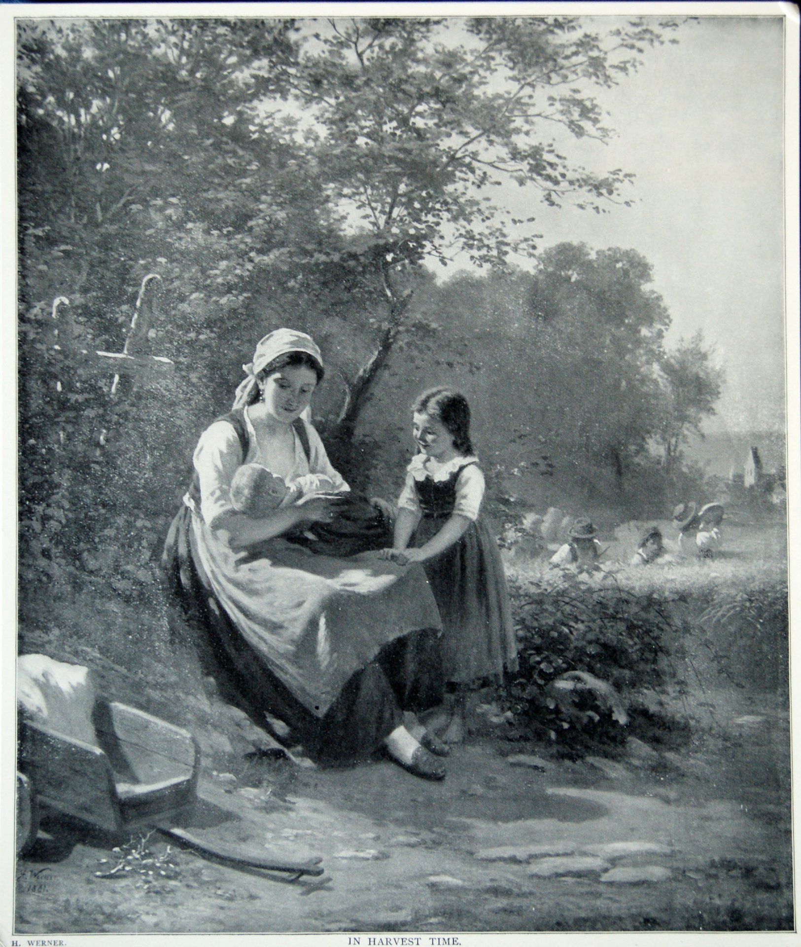 Fotogravur, bezeichnet: „In Harvest Time, H. Werner,  signiert H. Werner 1881“, veröffentlicht in einer englisch sprachigen Zeitschrift um 1894 mit ausführlicher Bildbeschreibung. 25.4 cm x 21.6 cm