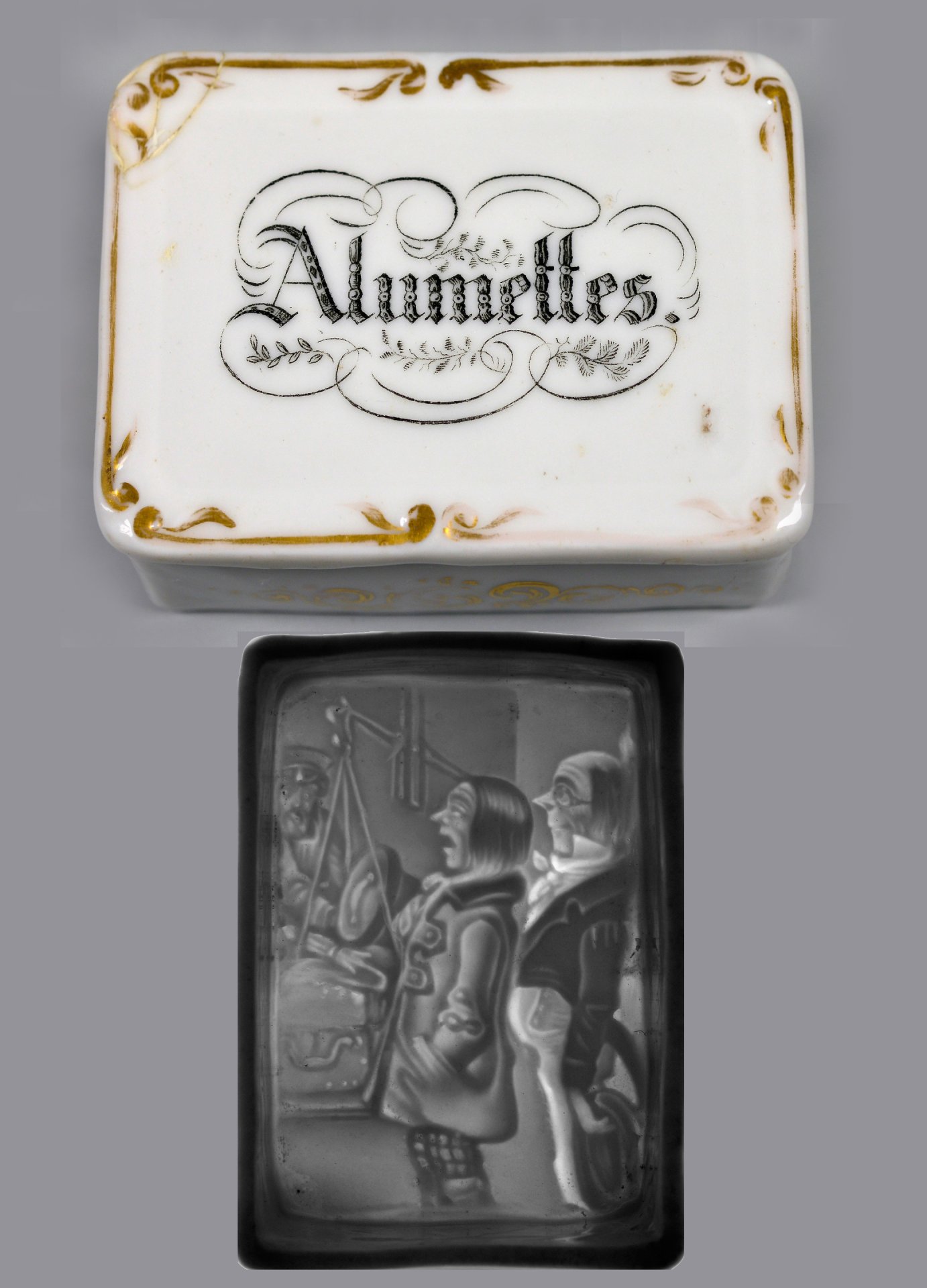 Zündhholzdose aus Porzellan mit Lithophanie, D2328